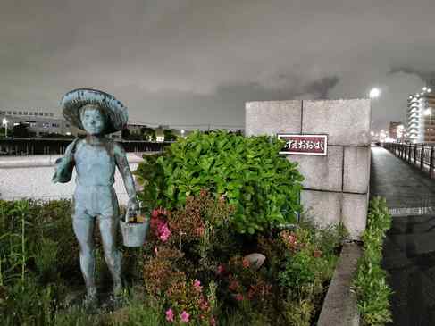 瑞江大橋と銅像
