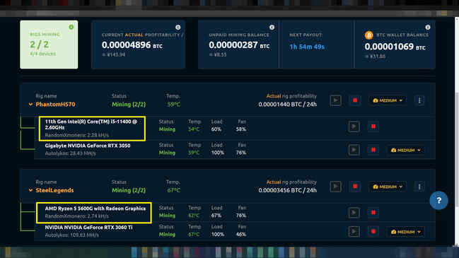 Core i5-11400とRyzen 5 5600Gのハッシュレート