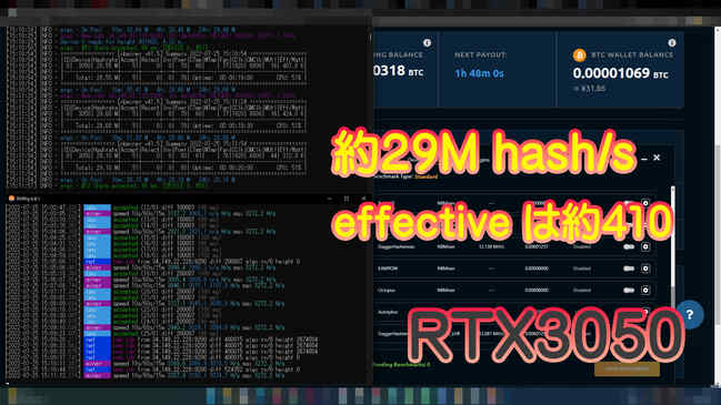 RTX3050のハッシュレートとエフェクティブ(効率)