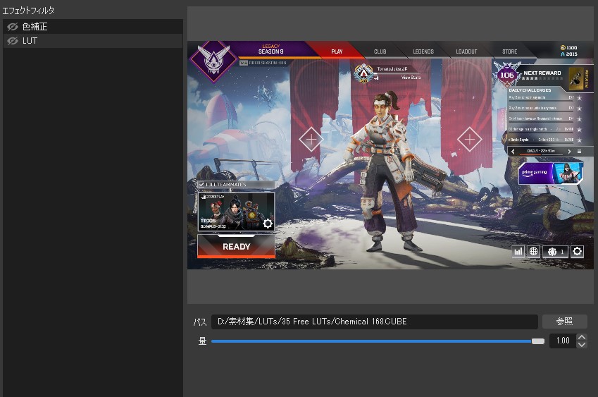 色補正と同様、目のマークを押してLUTをオフにする事も出来ます。