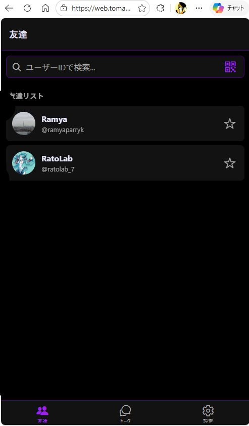 スマホの連絡先を勝手に同期するような機能なく、専用のユーザーID(@ID)やQRコードを使って、本当に繋がりたい相手とだけ繋がるプライバシー重視の設計。