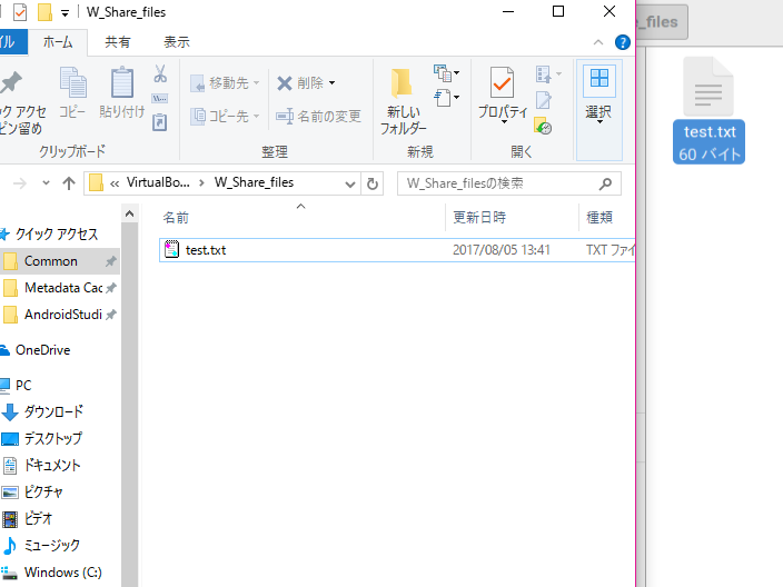 Windows10(ホストOS)からもZorin OS(ゲストOS)で作成したテキストファイルが保存されている事を確認出来ました。
