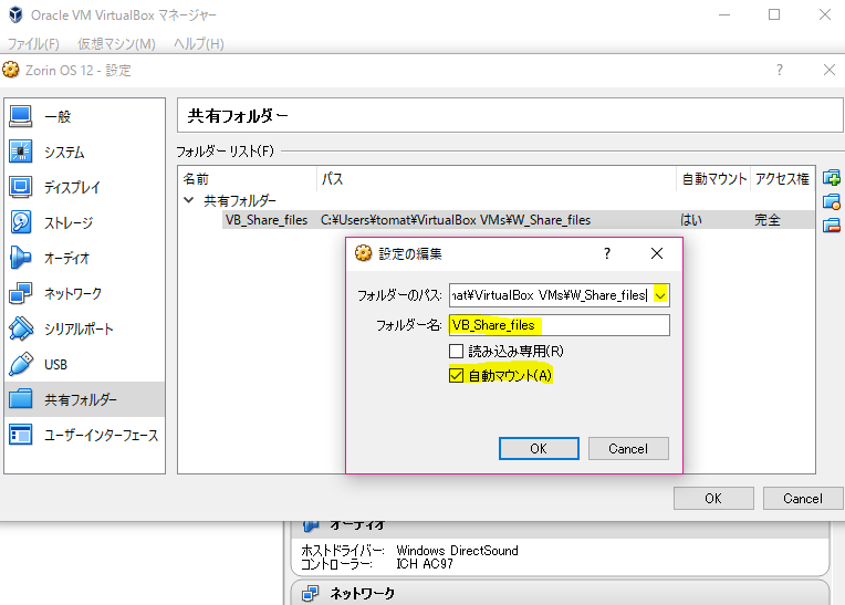 VirtualBox上のZorin OSとホストOSのWindows10のファイル共有&自動マウントメモ書き