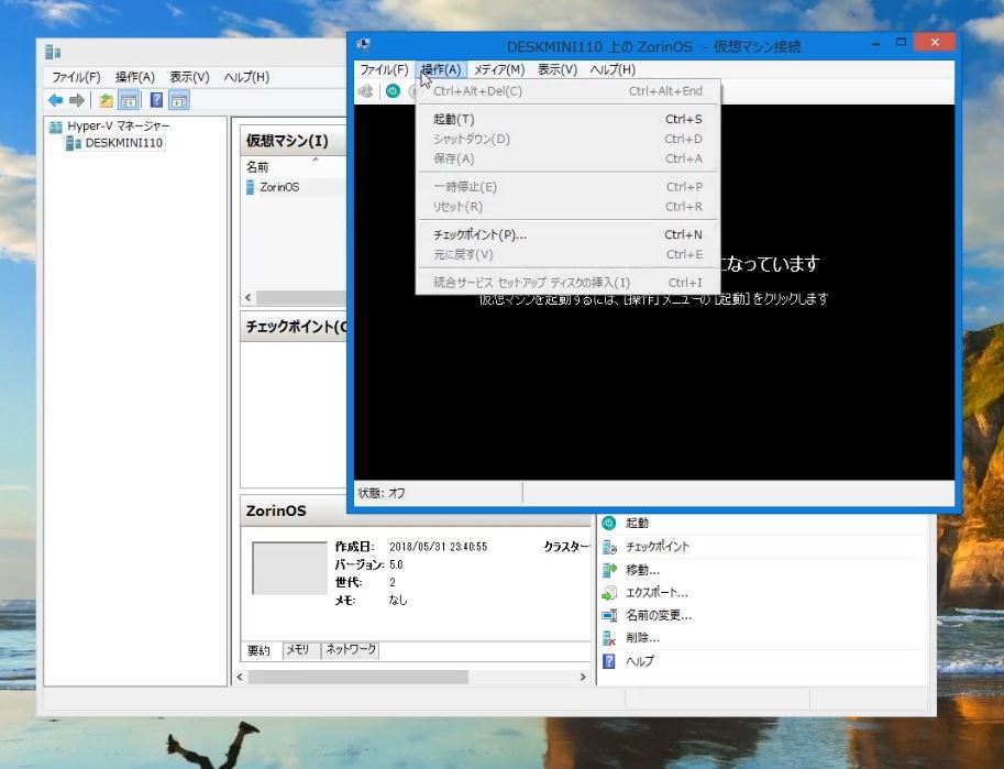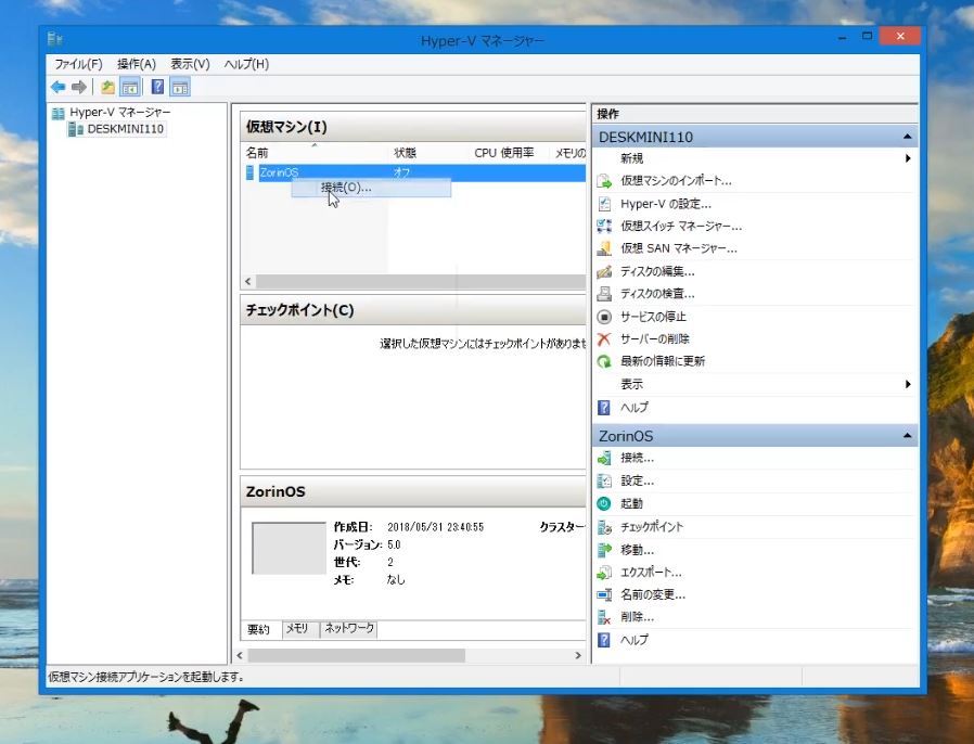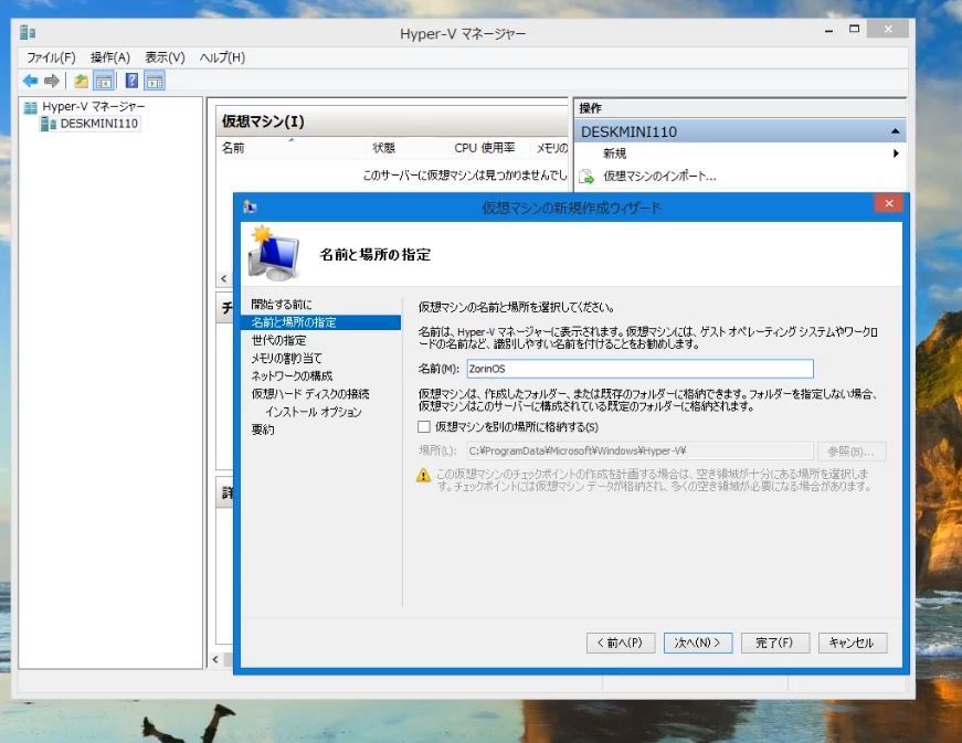 Hyper-VにZorin OS(Linux)の仮想化環境を構築