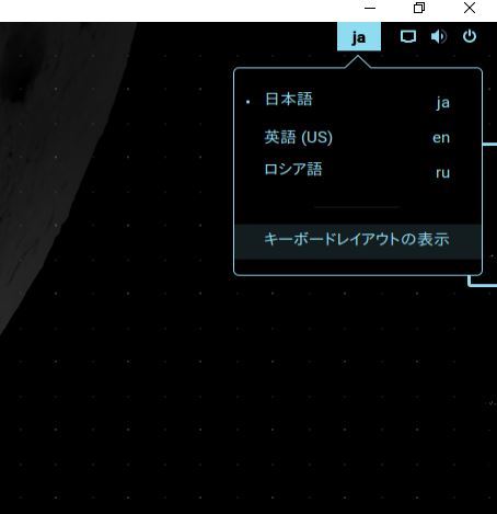 すると、僕のデスクトップ環境では右上にキーボード配列の切り替えがあるのだけど、ここで配列を切り替える事で、ロシア語というかキリル文字が入力出来るようになりました。ロシア語入力設定はこれだけで完了です。