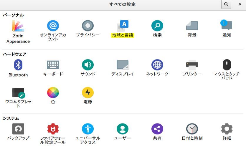 あ、因みにZorin OSは日本語キーボードを選択し、デフォルトの言語を日本語でインストールしている事を前提にメモ書きしてます。