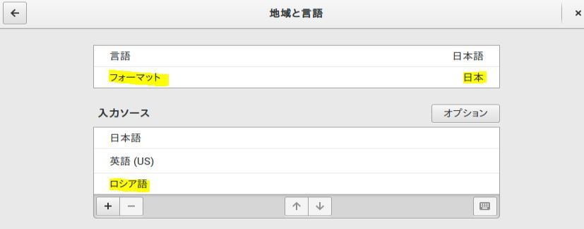 ロシア語のキーボード配列追加方法は、上の画像使いまわすけど、設定画面から地域と言語をクリックし、入力ソースを追加で完了。