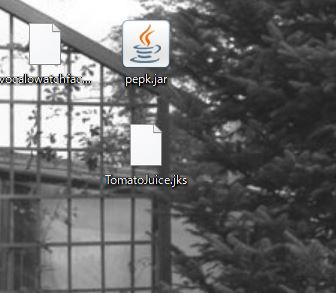 まず、ダウンロードしたpepk.jarと、Keystore(今回はTomatoJuice.jks)の2つのファイルをデスクトップに置いて試してみました。