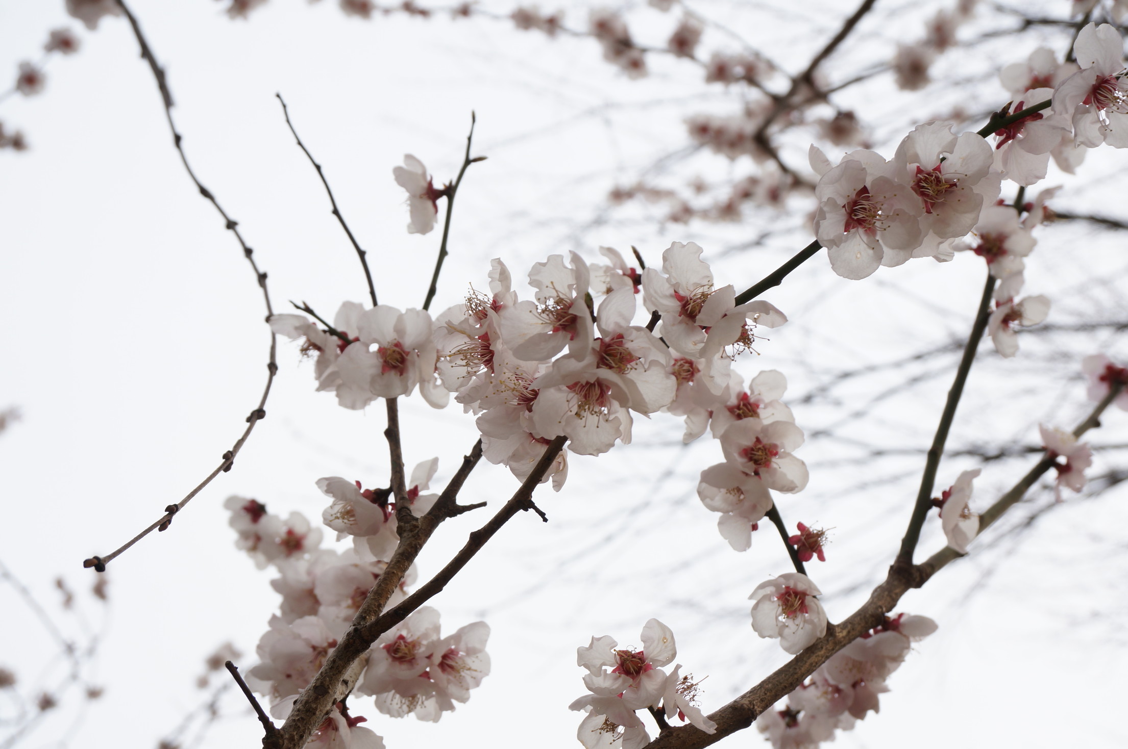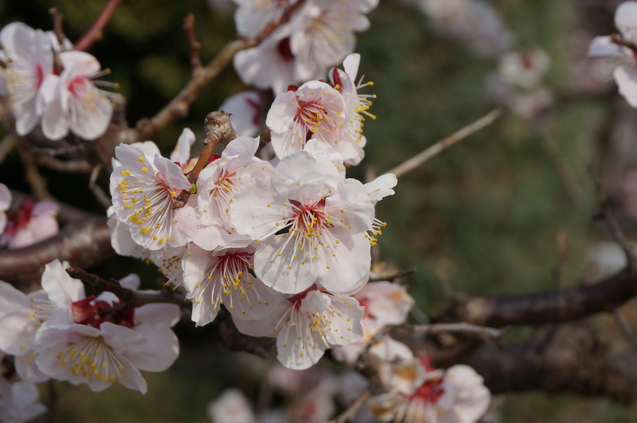 あまり大きな木ではないので自然と目線が低くなるのと、花びらが枝からほぼすぐの場所に咲いているので、桜とは直ぐに見分けがつきますね。