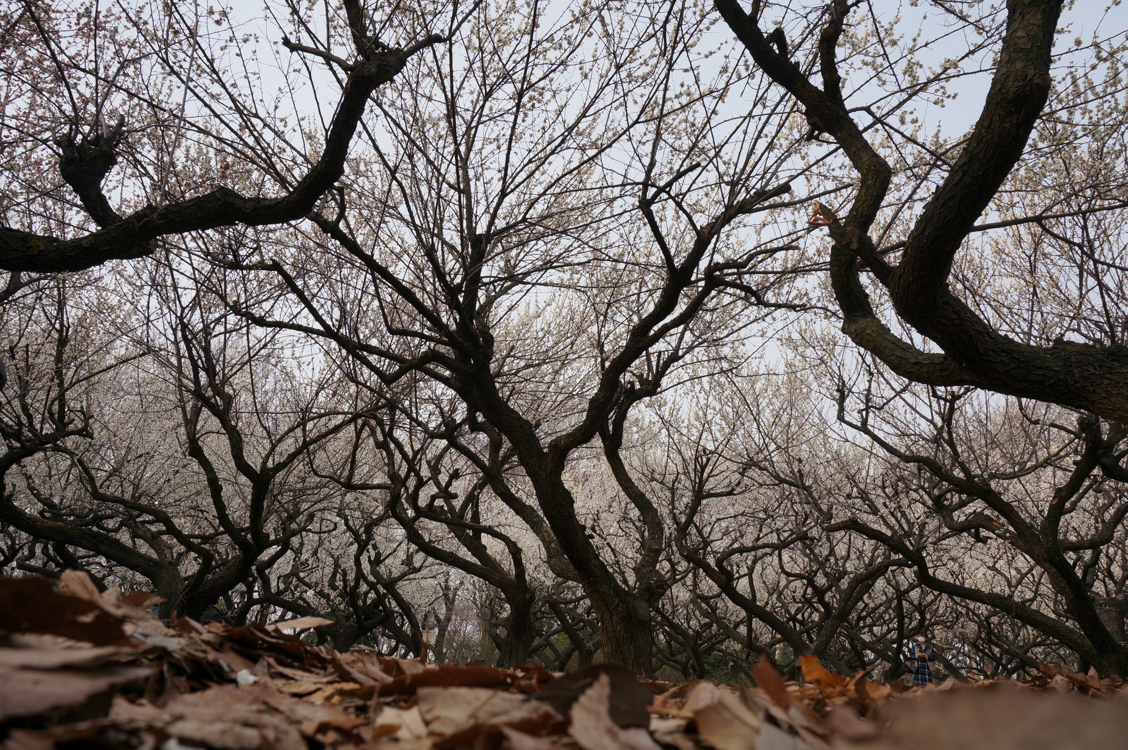 淡くきれいなピンクと白の花びらが入り混じる梅林。その儚げな景観に心を打たれました。
