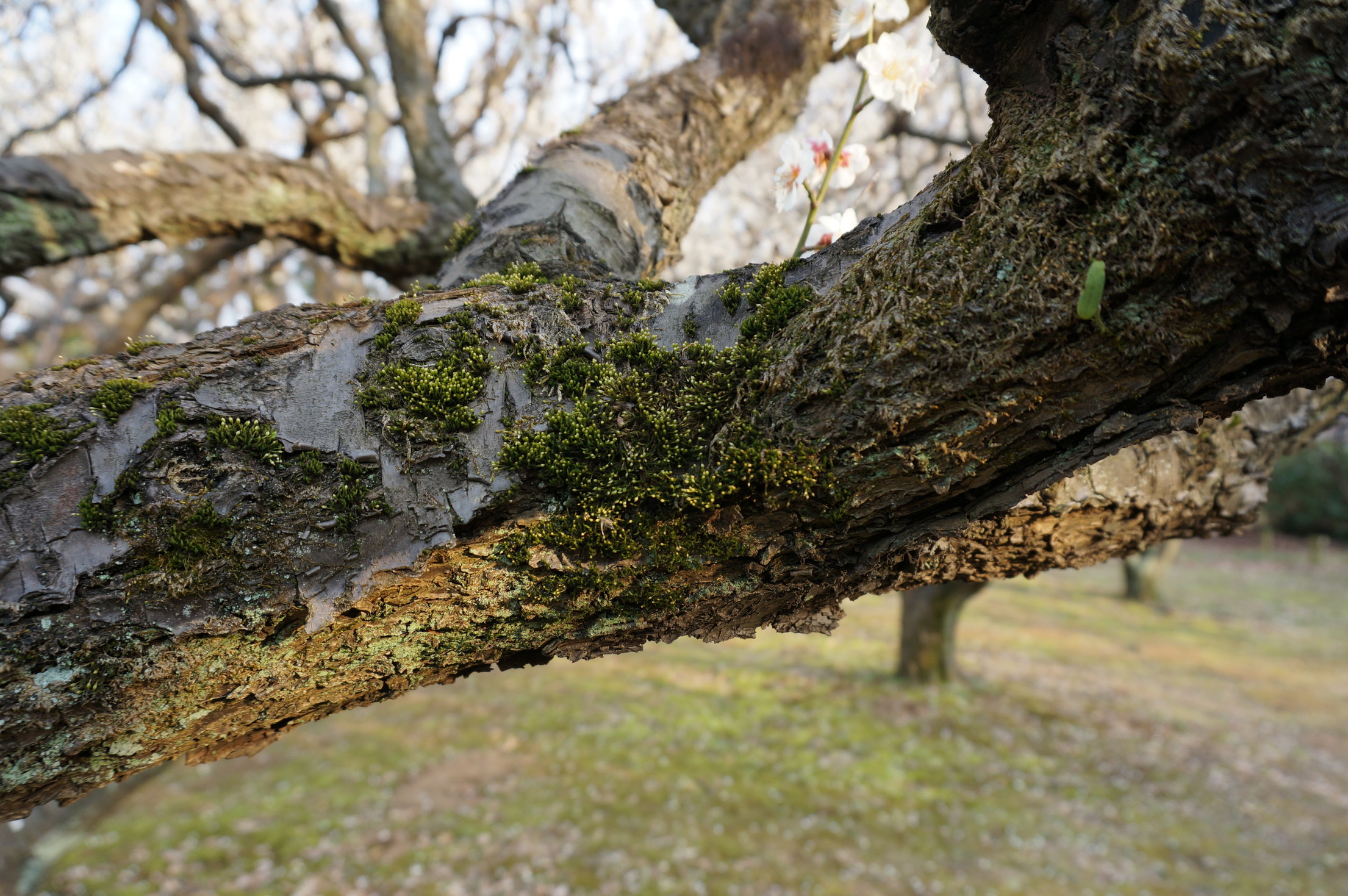 赤塚溜池公園の梅の木に生えたコケ