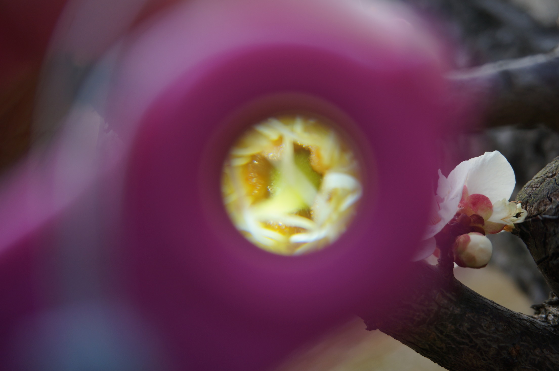 赤塚溜池公園の梅の花の花糸、葯をRaymayのRXT123で観察