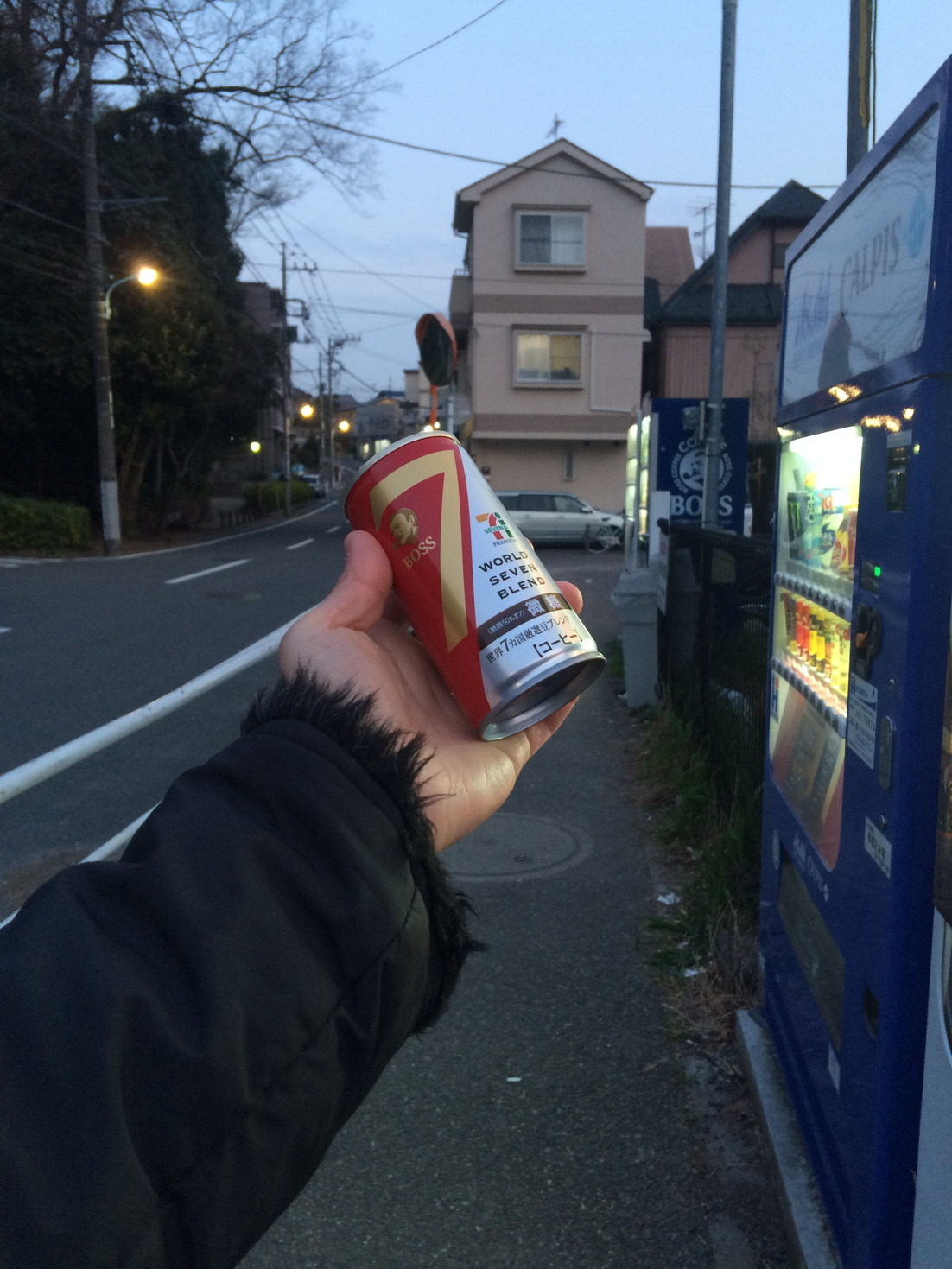 赤塚溜池公園からの帰路、缶コーヒーを買う