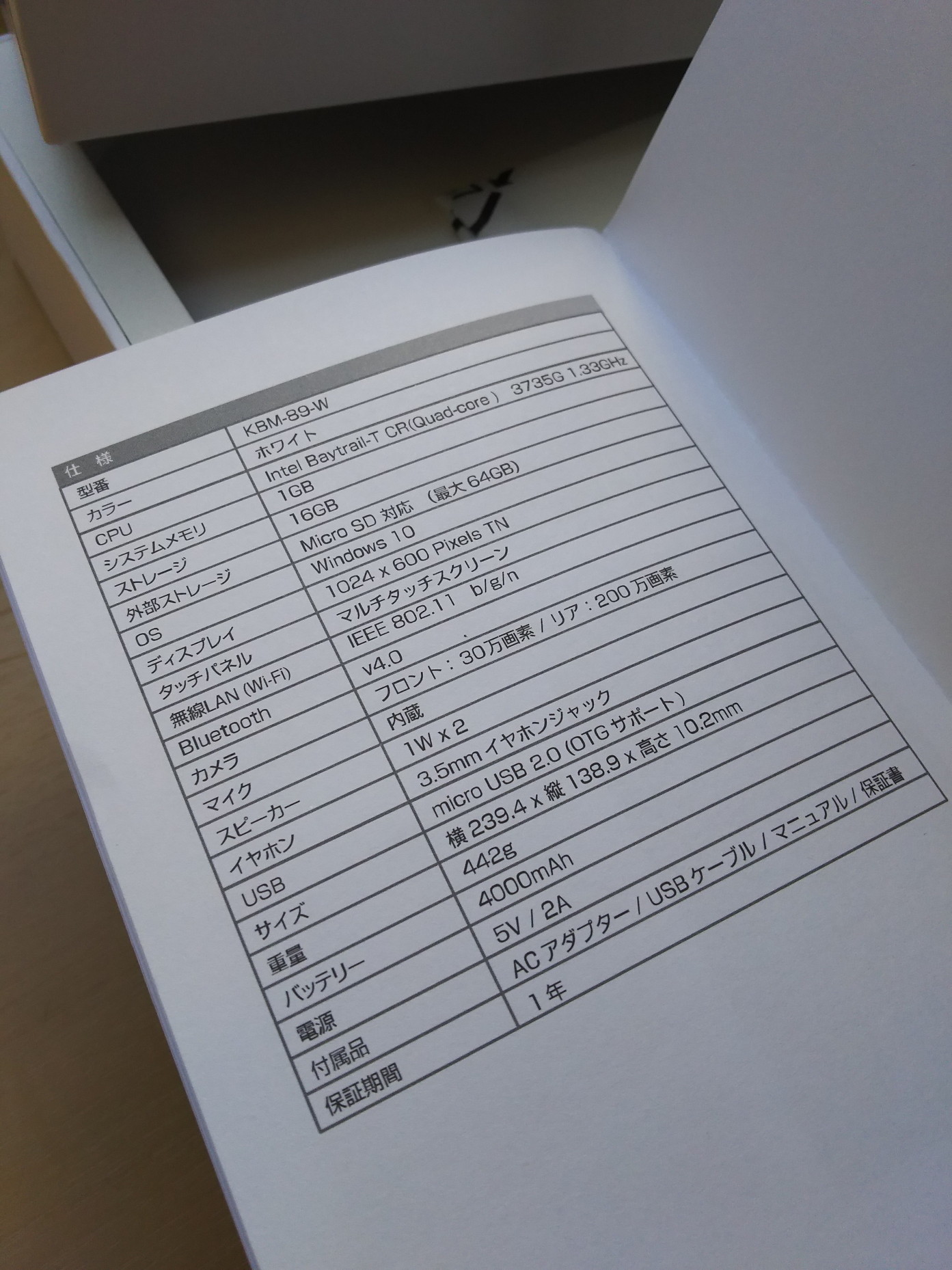あと、Windowsタブレットの使い勝手も気になったので購入したのですが、このKENANのWindwos10のタブレットは、1万円以下で、しかも日本で1年のサポートが受けられるというので、試しに買ってみたのです。