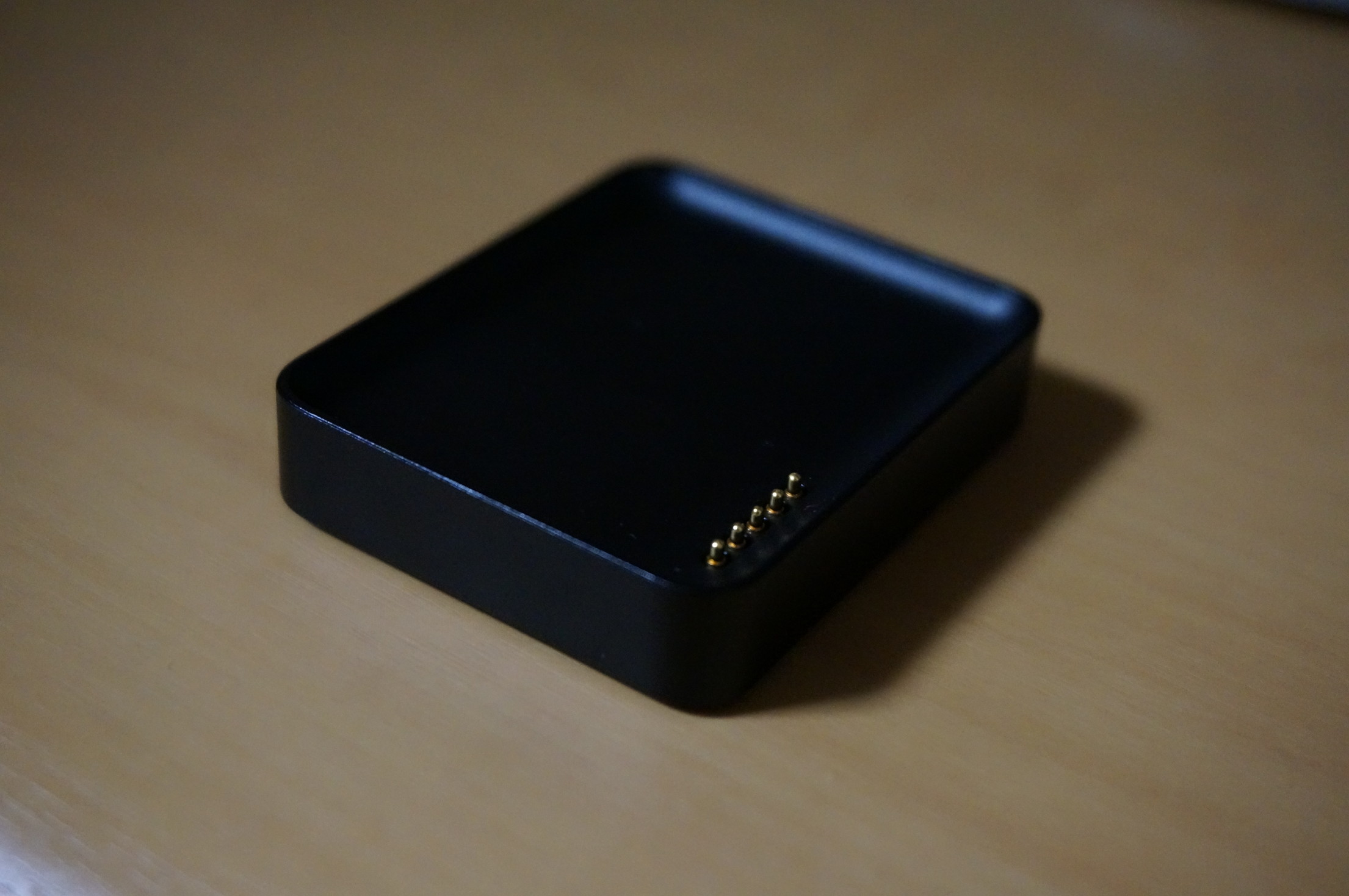 LG Watch、W100を装着してみた。右は説明する必要もないけど、クレードルの写真です。