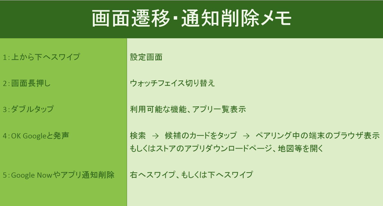 これはAndroid Wear現行バージョンの画面遷移と、通知の削除方法のメモです。