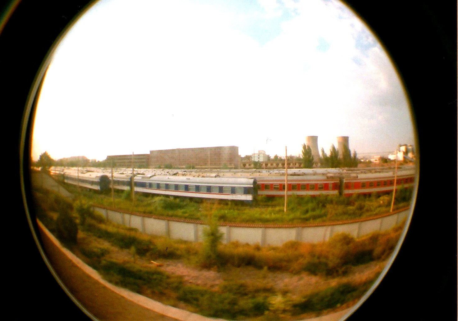 2008年の中国旅行、上海~烏魯木斉間の寝台列車の車窓からLomographyのfisheye2で撮影