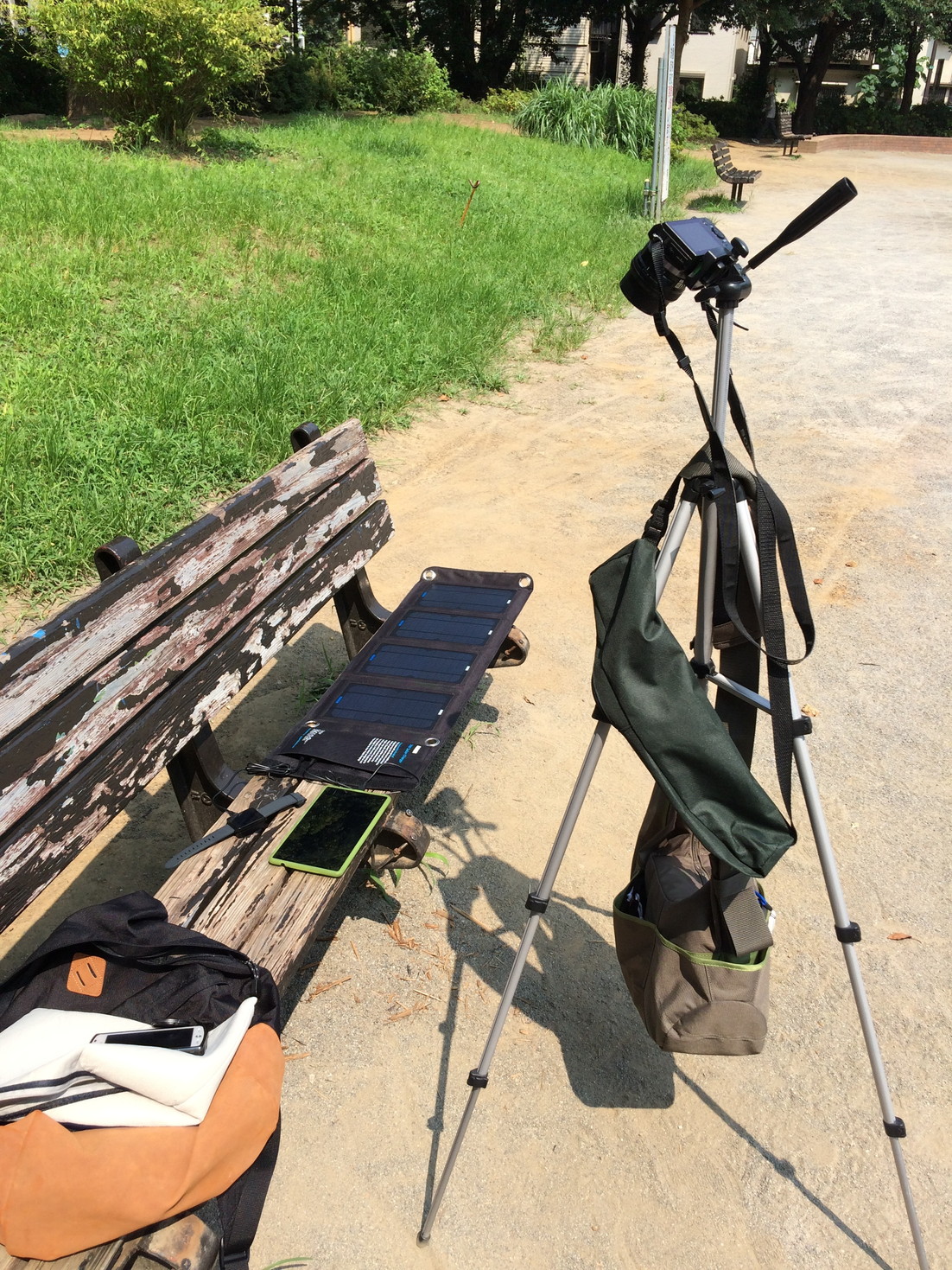 休日、付近の平和公園で30分だけ太陽充電器をテストしてみた時の様子。