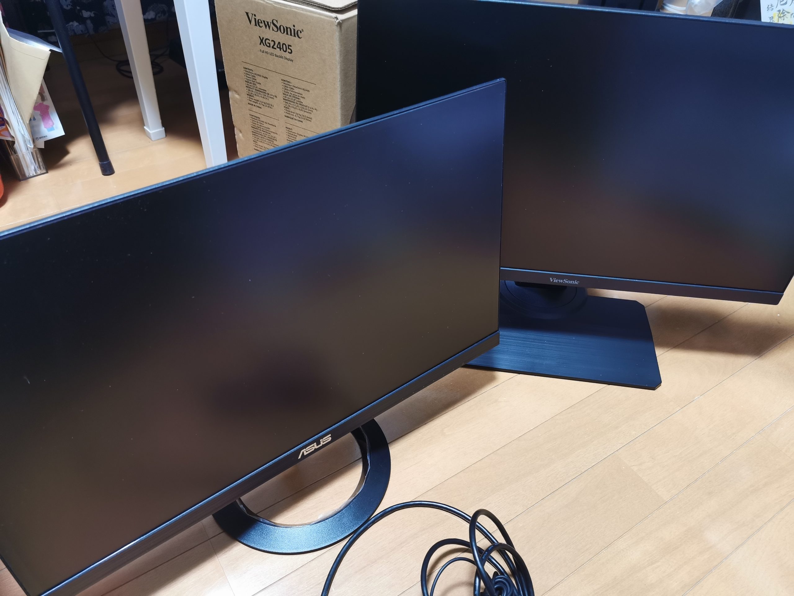 ViewSonicのドスパラオリジナルモデルのゲーミングディスプレイ、XG2405と、G.Skillのノート用DDR4-2666メモリ16GBを2個購入し、開封